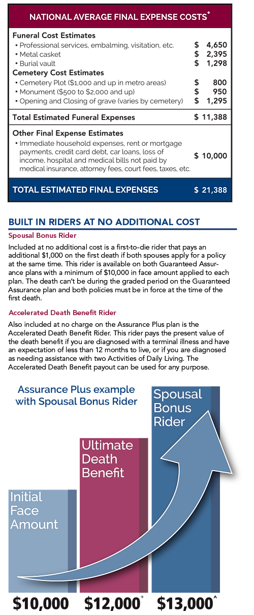 Guaranteed Assurance final expense coverage has an easy application process and +Assurance Plus underwritten policies will have a death benefit of 120% of any original face amount when all health questions are answered “no." Other Final Expense Estimates Immediate household expenses ... Get Doc